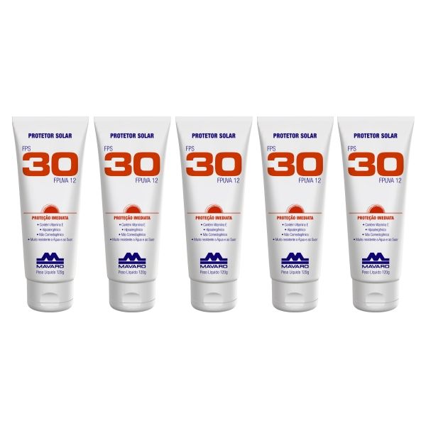 Informações do produto: KIT Protetor Solar FPS 30 Mavaro Bisnaga 120g - 05 UND
